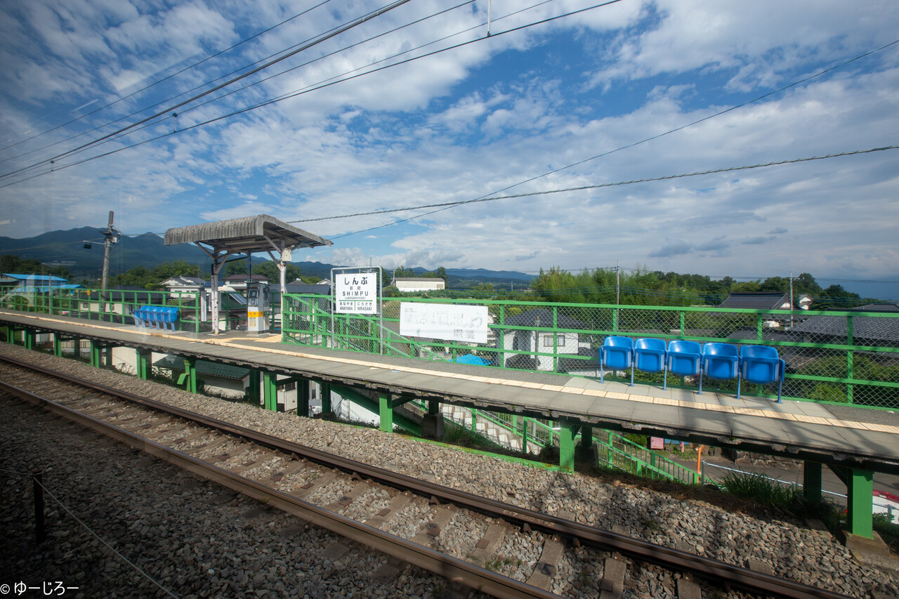 甲府駅を過ぎるとだいたいこんな感じの長閑な田舎の駅が続きます。